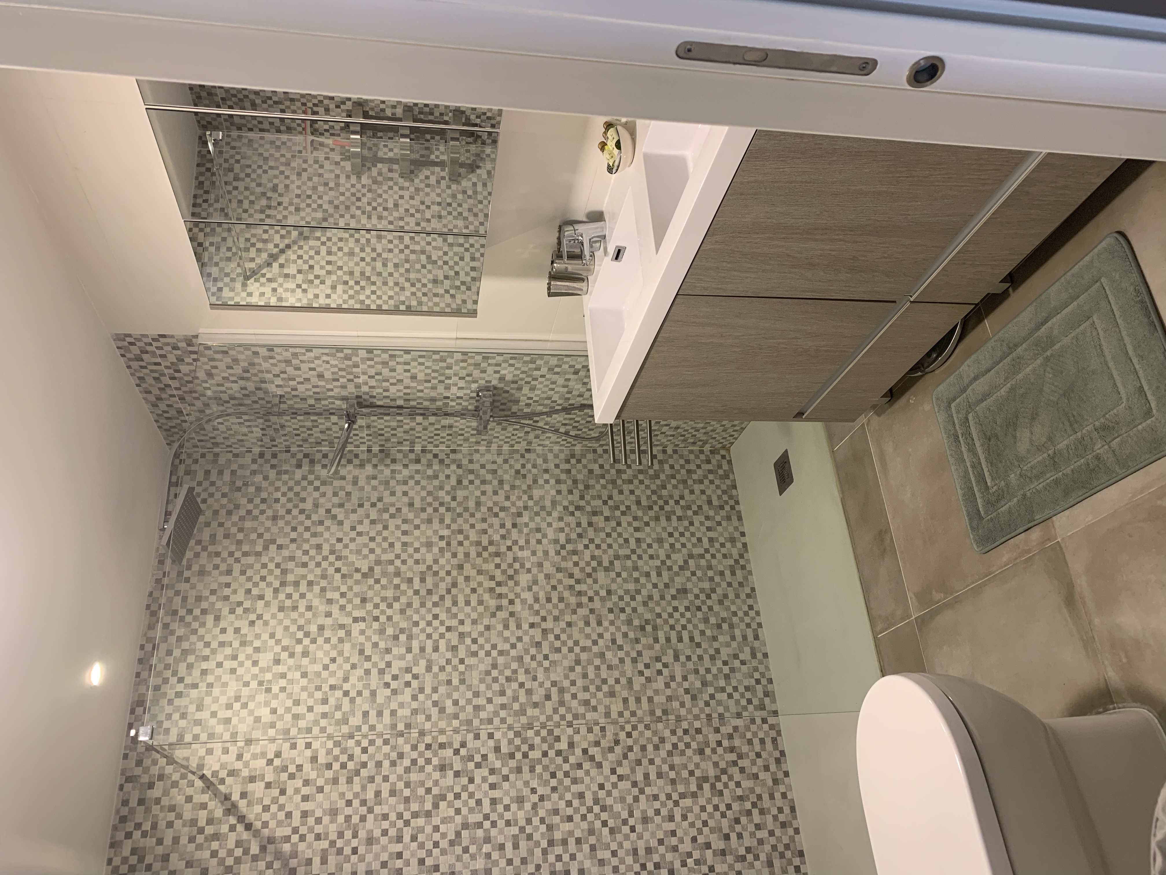 - Bathroom with shower and double sink